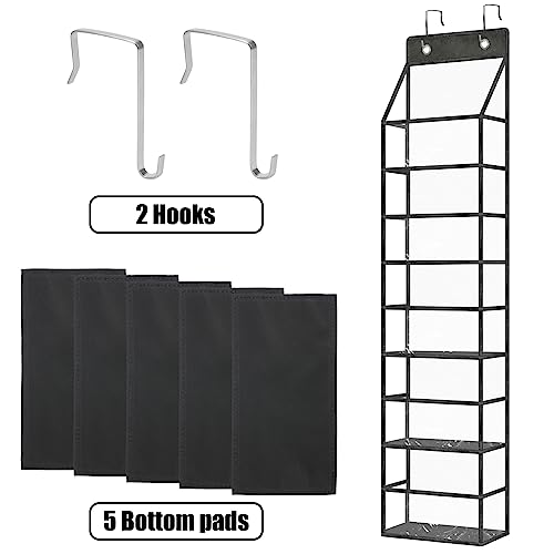 3. [Package Includes]: The package comes with 1 fully transparent over-the-door organizer, 5 black pp bottom plates, and 2 durable metal hooks. For any issues during use, please feel free to reach out to us for immediate assistance.