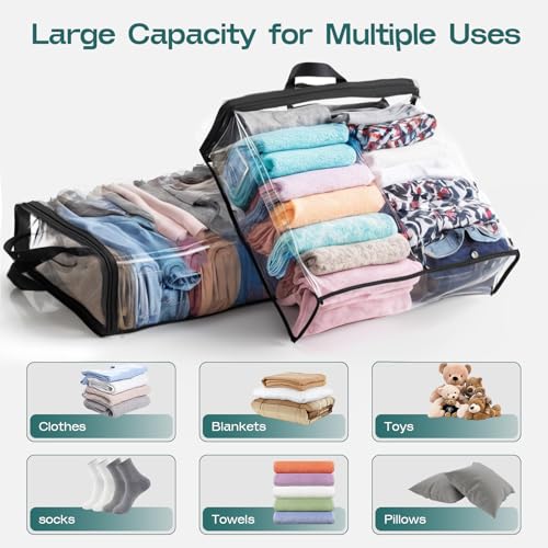 【Transparency Design】these zippered storage bags featuring a see-through design, are waterproof and puncture-resistant, sturdy, with the highest level of transparency, you can view the contents of the storage box, quickly find and differentiate your blankets, clothes, quilts, towels, pillows, shoes, books, and toys.