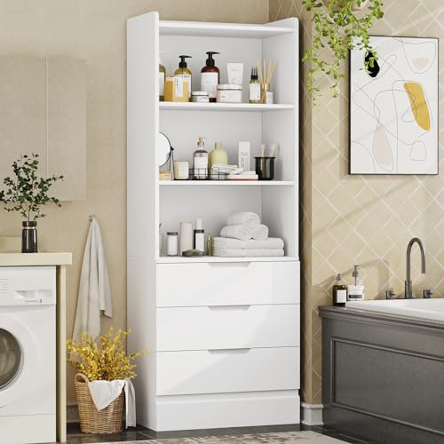 Be the first to review “DICTAC 73.23” Tall Storage Cabinet Bookcase with 3 Drawers and 3-Tier Open Shelves Wooden Bookshelf Kitchen Pantry Storage Organizer Cabinets for Living Room, Study, Kitchen,Bathroom,White”