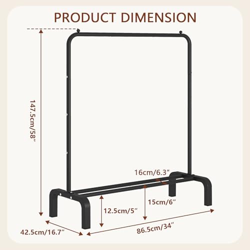 【Good Load-Bearing Capacity】– The load-bearing capacity of the clothing rack is 150 lb/68 kg. It allows you to hang many pieces of clothes at the same time, because the main material of the garment rack is steel.
