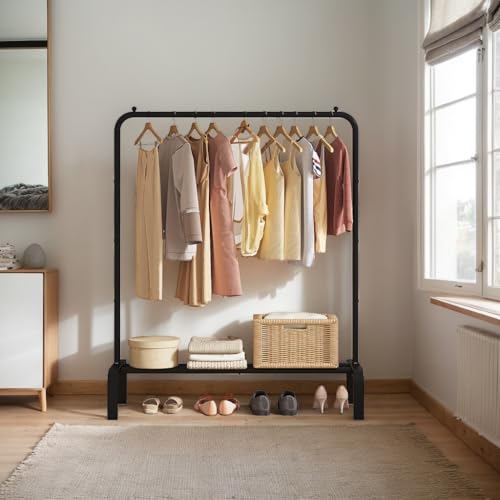 JIUYOTREE Standard Clothes Clothing Garment Rack with Storage Shelves Clothes Organizer for Hanging Clothes Coat Jacket Shirt Sweater Jeans Black