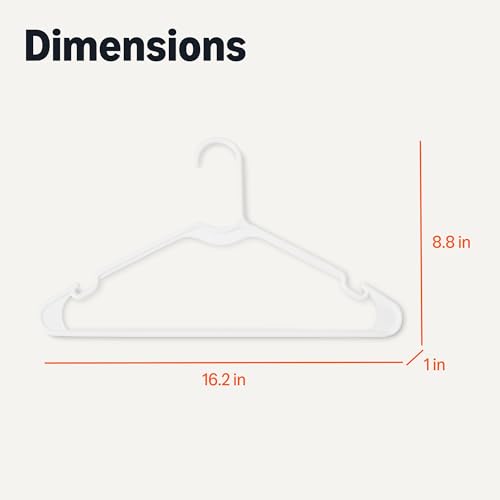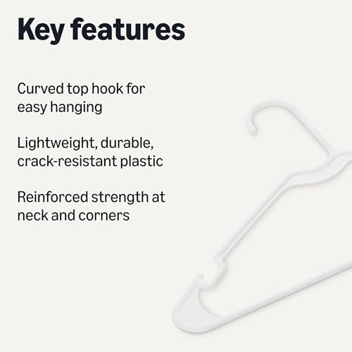 Amazon Basics Plastic Clothes Hangers, Adult Size, White, Pack of 50