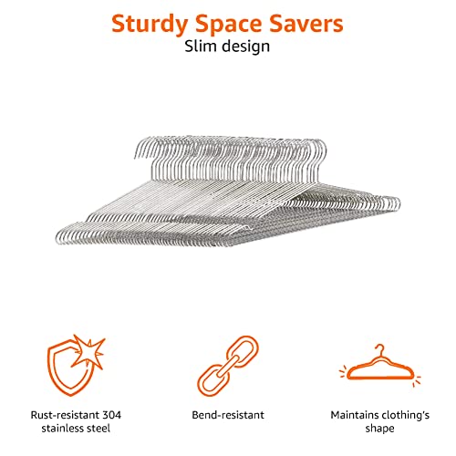 Amazon Basics Stainless Steel Clothes Hangers, 50-Pack, Silver