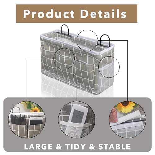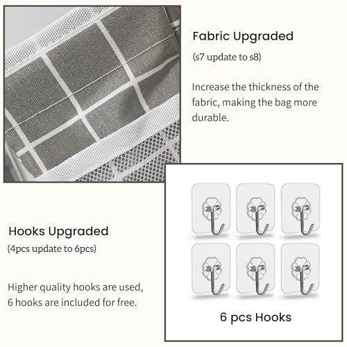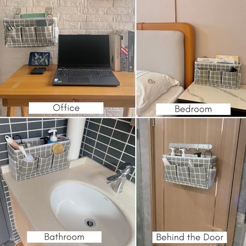2pcs Light-Style Wall Hanging Storage Bag, Linen Fabric Door Hanging Organizer Baskets with Pockets, Waterproof Bin for Bedroom, Kitchen, Office, RV Camper (GreyGrid-2pcs)