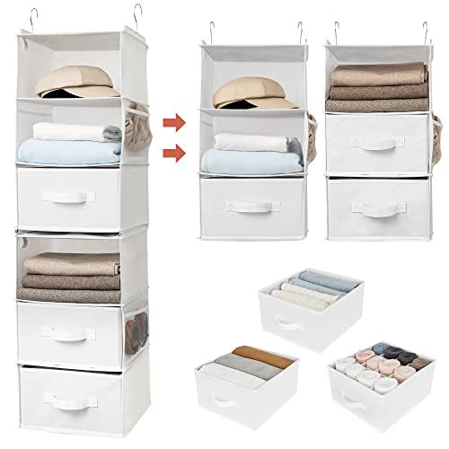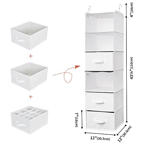 GRANNY SAYS 6-Shelf Hanging Organizer for Closet, Separable to 2 Pack 3-Shelf Hanging Shelves, Organization and Storage with 3 Different Drawers, 4 Side Pockets, White, 1-Pack