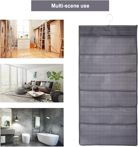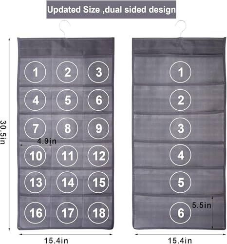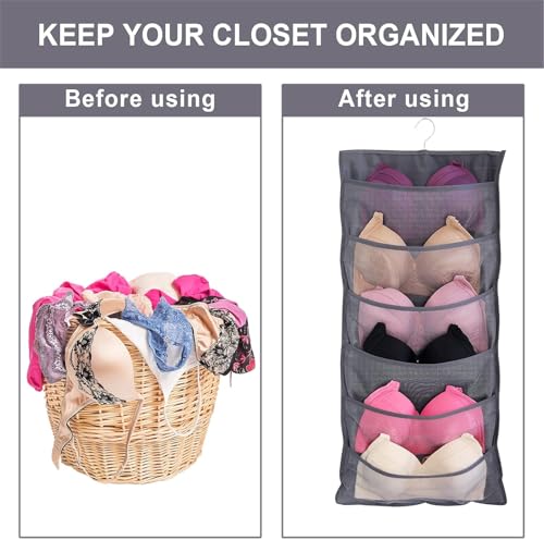Hanging Mesh Pockets Dual-Sided Closet Organizer for Underwear,Bra,Socks,Accessories with Hanger,Total 24 Pockets Grey
