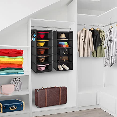Hat Rack for Closet Hanging Organizer Fedora, 2 Pack 10 Shelves Organization, Cap Storage Cowboy Wide Brim Sunhat XL Holder Easy to Install (Black)