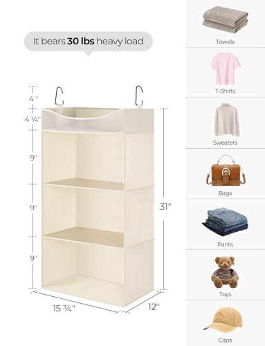 StorageWorks Hanging Closet Organizer, 3-Shelf Hanging Closet Shelves with Top Shelf, 15 ¾”W x 12″ D x 31″ H, Extra-Large Space, Ivory White