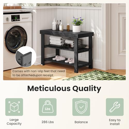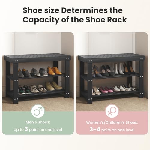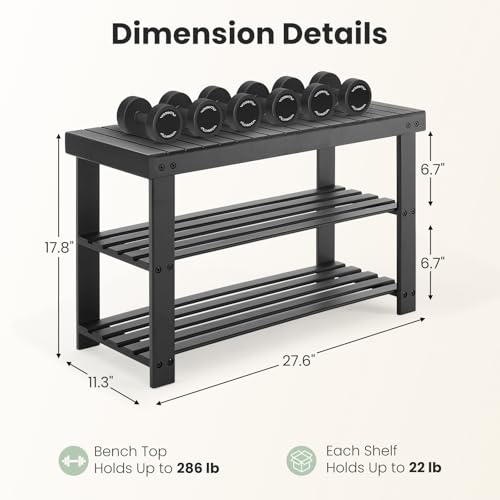 DUMOS Shoe Rack Bench, 3-Tier Bamboo Entryway Benches, Holds Up to 286 lb Storage Organizer, 11.3 x 27.6 x 17.8 Inches, Suitable for Bedroom Living Room Balcony, Black