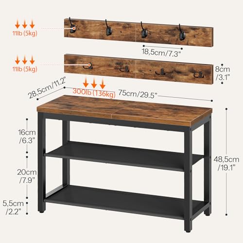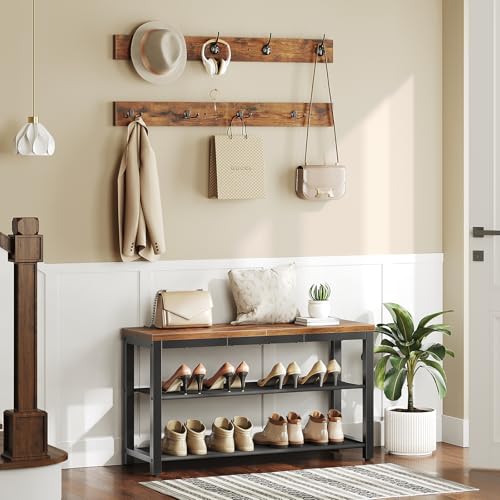 Unique Style: This coat rack shoe bench adopts a rustic brown design, blending a functional shoe bench with coat hooks to embody an industrial aesthetic. More than just a stylish accent for your foyer, it is a standout addition that combines practicality and beauty