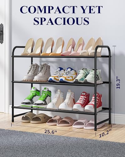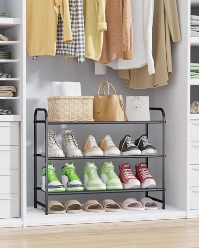Kitsure Shoe Rack – Stainless Steel Shoe Organizer, Sturdy Shoe Rack for Closet and Front Door Entrance, Free Standing Shoe Shelf, Closet Organizers and Storage, 25.6″ Wide – 3 Tier, Black