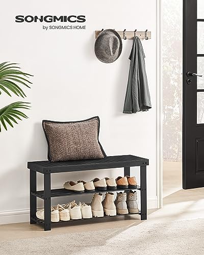 SONGMICS Shoe Rack Bench, 3-Tier Bamboo Shoe Storage Organizer, Entryway Bench, Holds Up to 286 lb, 11.3 x 35.4 x 17.8 Inches, for Entryway Bathroom Bedroom, Ink Black ULBS90B33