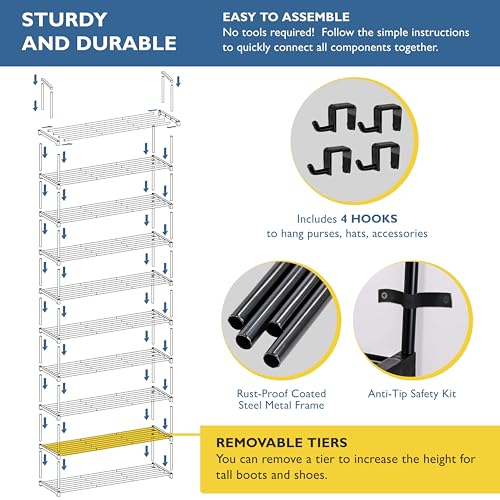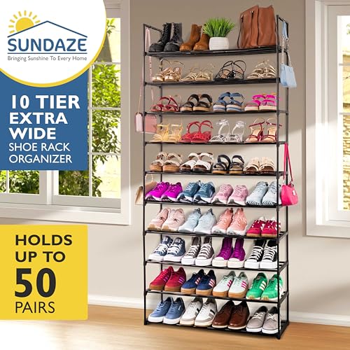 Sundaze Shoe Rack – 10 Tier Metal Shoe Rack for Front Door Entrance, Sturdy Tall Shoe Organizer for Closet, Bedroom, Entryway, Garage, Black Metal Shoe Shelf, Holds Up to 50 Pairs