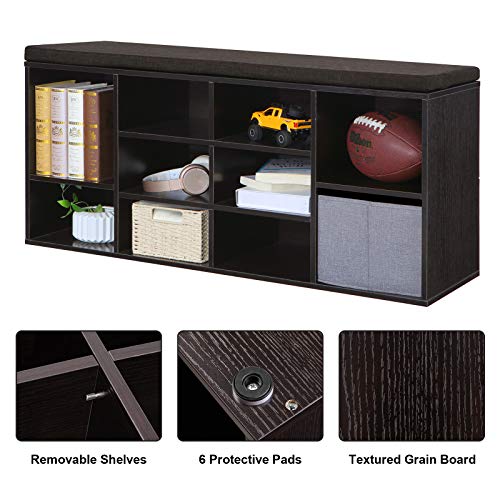 VASAGLE CUSTOS Collection – Shoe Bench, Storage Bench with Padded Seat, Entryway Bench with 10 Compartments, for Bedroom, 11.8 x 40.9 x 18.9 Inches, Espresso Brown and Chestnut Brown ULHS10BR