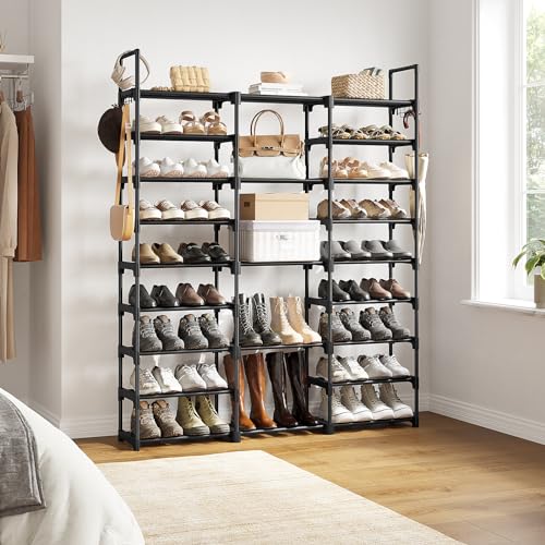 WOWLIVE 9 Tiers Large Shoe Rack Storage Organizer for Closet 50-55 Pairs Shoe Tower Unit Shelf Stackable Shoe Rack with Metal Pipes Plastic Connectors Black(SSS3B9)