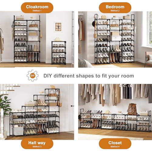 9-Tier Shoe Rack:Featuring a compact profile, you can easily set this shoe rack in the hallway, living room, bedroom,or garage. It helps you maximize your vertical space while saving more floor space for other items.The product is designed to be disassembled and assembled freely. You can remove the five layers to store boots, high heels or other larger accessories to suit different scenarios