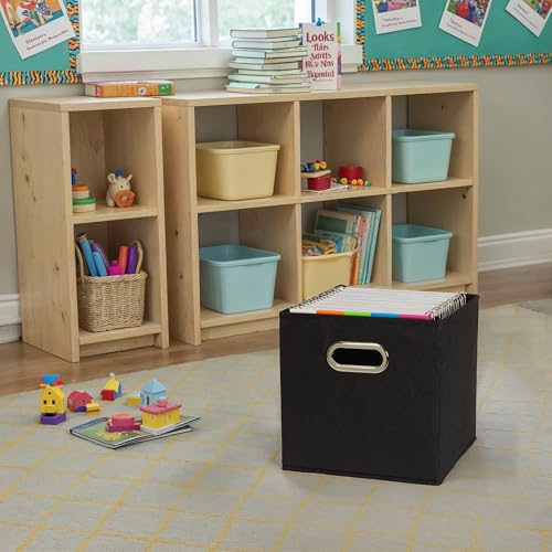 Six collapsible black cubbie storage baskets for organizing offices, nurseries, and bedrooms