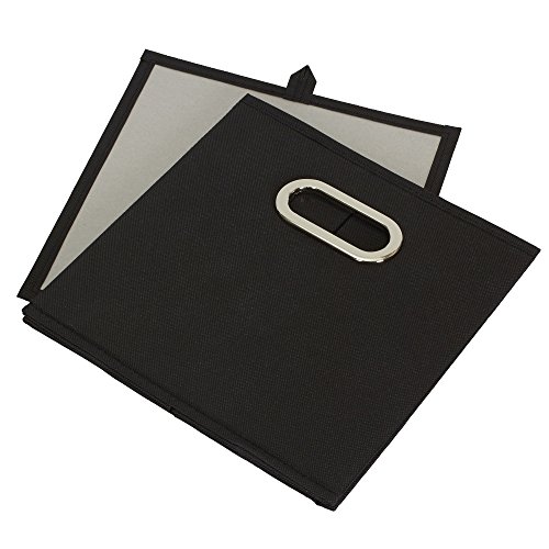 Household essentials set of 6 black fabric storage bin cubes are classic collapsible storage bins with a single grommet handle for pull-out storage that is Fast, simple, and completely color-coordinated. This great set of storage bins transforms home and office clutter into great design. Each bin has sturdy fiberboard sides and base with durably polypropylene fabric on top. PP cloth is strong and durable, and it wipes clean with a damp cloth. Ideally sized to fit on shelves or inside open cubes for a make-shift dresser or desk, these cloth storage bins keep organization simple. Perfect for organizing clothing, accessories, cosmetics, toiletries, office supplies and more! Each bin in this set of 6 is 11 inches high, 11 inches wide, and 11 inches deep.