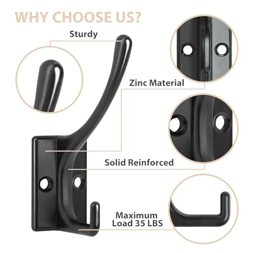 【Keep Everything Organized & Within Reach】The metal hooks strong and sturdy, anti-rust and anti-corrosion, made of good quality zinc die cast material, the screws are made of iron, easily hold up to 35 lbs of weight, organize clutter quickly and meet your different hanging needs.