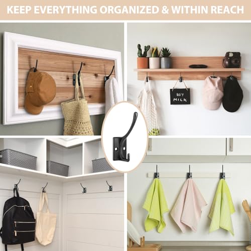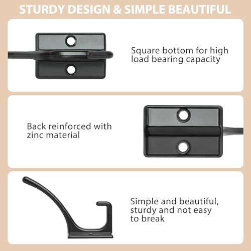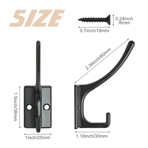 【Super Cost-effective Set】12 x Black coat hooks, 24 x screws. double hooks and square bottom design provides extra strength, sturdity and beautiful, rustic suitable for most decoration. Coat hooks can help you organize clutter quickly, meet your different hanging needs.