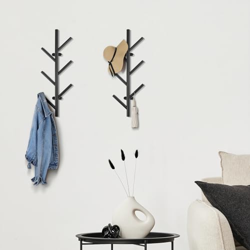 2 Pack Vertical Coat Rack Wall Mount,Metal Vertical Hat Rack for Wall(16 inches),Suitable for Hanging Clothes, Hats, Bags and Scarves(Black)