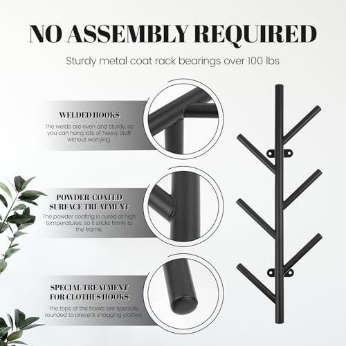 No Assembly Required:Wall mounted coat rack constructed from heavy-duty welded steel with a scratch-resistant black finish. Pre-assembled for out-of-the-box installation—no tools or complicated setup needed. Strong weight capacity easily holds heavy coats, backpacks, or even gym gear.