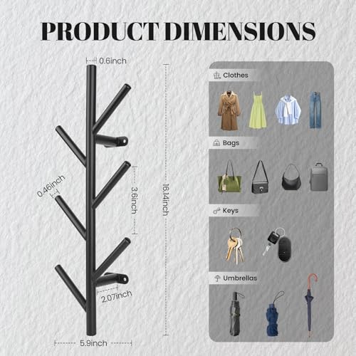Modern Branch Design:The minimalist tree-branch silhouette doubles as wall decor, elevating interior style. The matte black finish seamlessly blends with rustic, industrial, or contemporary decor, transforming this functional storage unit into a stylish focal point for living rooms, offices, or hallways.