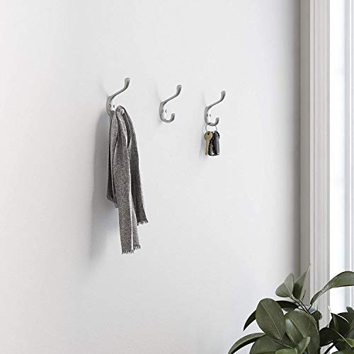 Franklin Brass Heavy Duty (5-Pack) Coat and Hat Wall Hooks Double Hooks for Hanging Matte Nickel Wall Mount Hanger Backpack, Purse, Bag, Towel Organization Decorative Wall Hooks FBCHH5-MN-C - Image 4