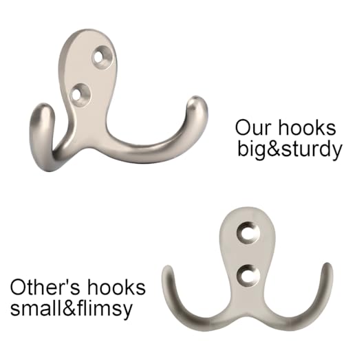 IBosins 8 Pack Heavy Duty Double Prong Coat Hooks Wall Mounted with 16 Screws Retro Double Hooks Utility Hooks for Coat, Scarf, Bag, Towel, Key, Cap, Cup, Hat