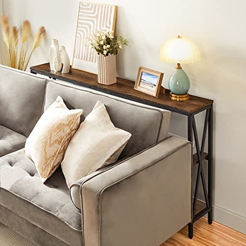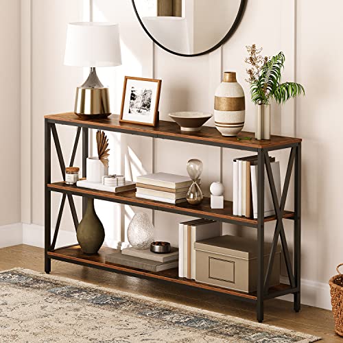 55″ Sofa Table, Industrial Console Table, 3-Tier Narrow Side Table with Open Shelves, Foyer Table for Entryway, Hallway, Kitchen, Living Room and Bedroom, Rustic Brown CTHR80401