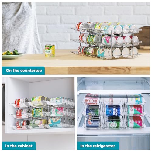 Durable and Eco-Friendly Material: Made from sturdy PET material, this canned food organizer for pantry can hold up to 36 standard cans, making it more robust than metal racks. Plus, it’s easier to clean, ensuring your storage solution remains hygienic