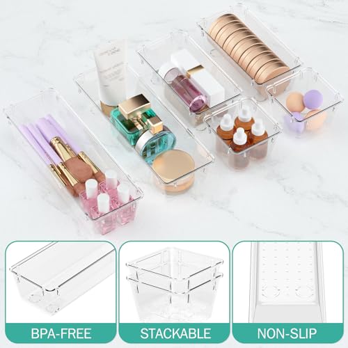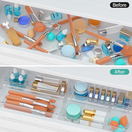 WOWBOX 6 Pack Clear Drawer Organizer Set, Acrylic Drawer Storage Trays, Storage Bins for Makeup, Cosmetics, Jewelries, Utensils, Gadgets, Office