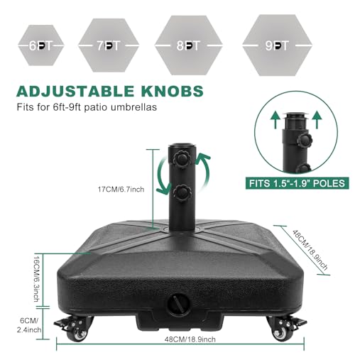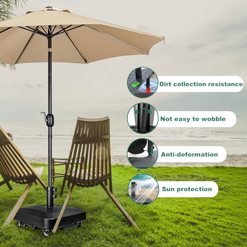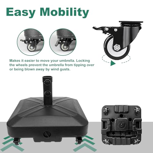 DZ4733 MS Patio Umbrella Base Heavy Duty with Wheels Square Market Stand for Outdoor 4 Locks 1 Knobs 125lb Capacity, Black