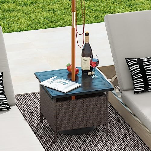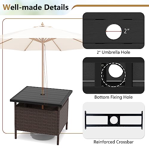 Giantex Umbrella Table, Outdoor Side Table with 2″ Umbrella Hole, Rattan Umbrella Stand Holder, Heavy Duty Metal Frame, Patio Bistro Table for Deck Garden Poolside (HDPE Tabletop)