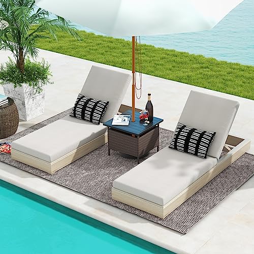 【2″ Umbrella Hole】: The outdoor table is specifically designed with a 2″ umbrella hole that can accommodate most umbrella poles. (Note: an additional umbrella base is required to enhance the stability of the umbrella.)