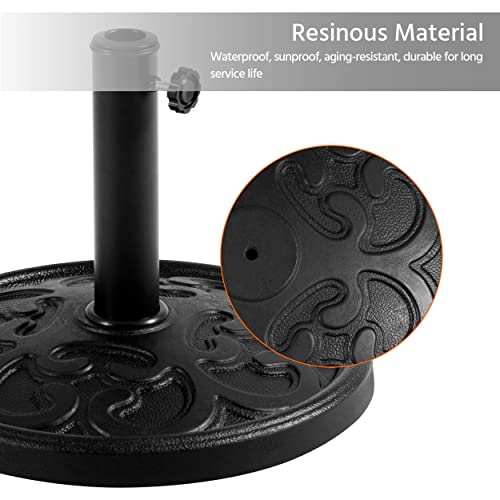 Heavy duty oriented: This patio market umbrella base stand is made of strong and durable resin and iron, which is really hard and long-wearing. Resin made of outdoor umbrella base stand is durable and stable, perfect for outdoor usage.