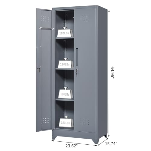 [Multifunctional design]: This metal storage cabinet design with clothes rails, pegboard and adjustable shelves allows you to flexibly arrange the internal space to meet the storage needs of different items, suitable for offices, storage rooms, utility room, gym, garage