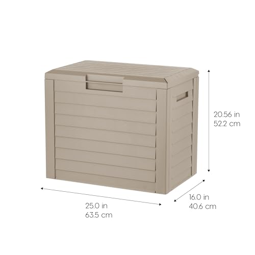 Enhance your outdoor living space with our Beige 35-Gallon Outdoor Deck Box. With a spacious 35-gallon capacity, it’s perfect for storing cushions, garden tools, pool accessories, toys, and more. The padlock hole adds security, ensuring your belongings stay safe. Made from durable, weather-resistant resin, this box includes an ultraviolet (UV) agent to protect it from sun exposure, preventing fading or cracking. Easy-to-assemble panels (lid, front, rear, bottom, and two sides) make setup quick and hassle-free. The sleek beige color and wood-like texture blend seamlessly with any outdoor decor, whether placed on your patio, deck, or in your garden. This versatile box can also serve as a bench or side table, providing extra seating and utility. Keep your outdoor space organized and protected with this durable, UV-resistant outdoor deck box – a practical addition to your home!