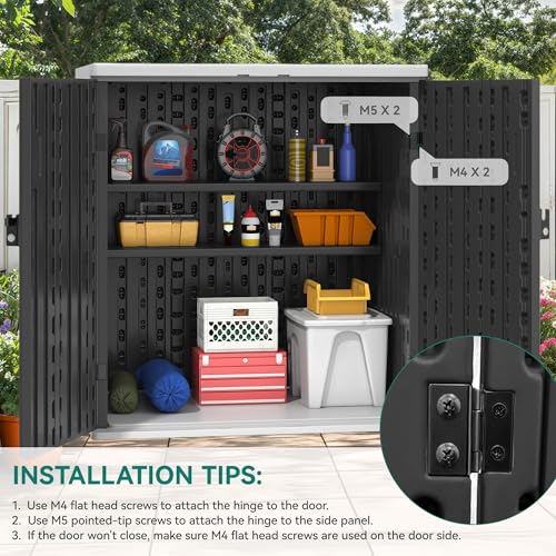 Easy-Setup Outside Storage Sheds: Delivered in one box with 2 sturdy partitions, this weather-resistant outside storage cabinet assembles effortlessly, providing a reliable, low-maintenance solution for organizing your outdoor essentials with style and ease