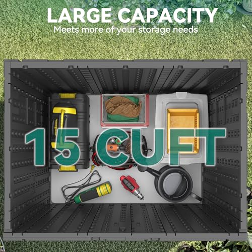 All-Weather Protection: Built to withstand any conditions, this 15 cu ft waterproof storage shed features heavy-duty, double-wall HDPE construction; It resists fading, rust, sun, and rain to keep your valuables protected season after season