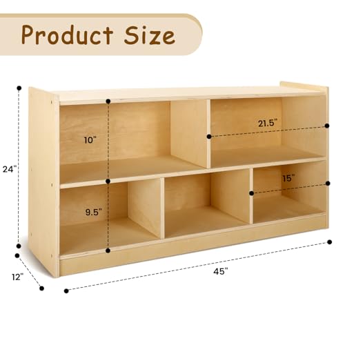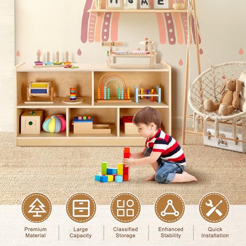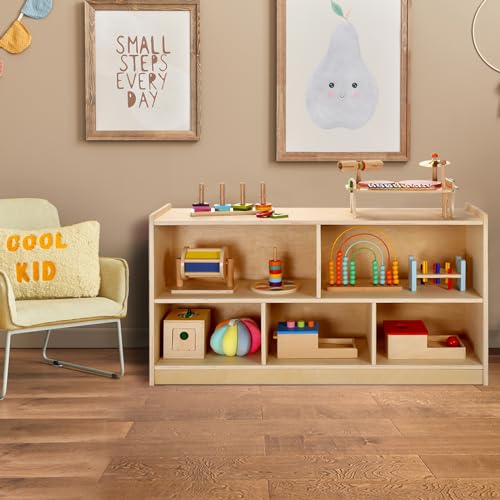 wingyz Wooden Storage Cabinet, 5-Section Montessori Bookshelf, Kids Toy Storage Organizer Book Shelf for Kids Rooms, Classroom, Playroom, Nursery, Preschool Book Shelves