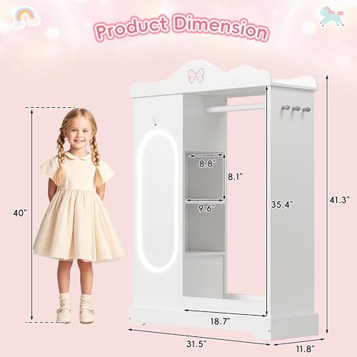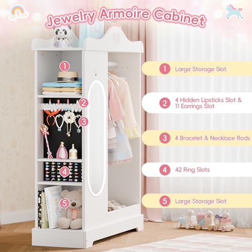 Xilingol Kids Armoire with a Jewelry Cabinet, Princess Dress Up Closet with Mirror, Kids Wardrobe Closet with Storage Shelves, Armoire Costume Organizer for Bedroom, Kids Room, Girl (White)