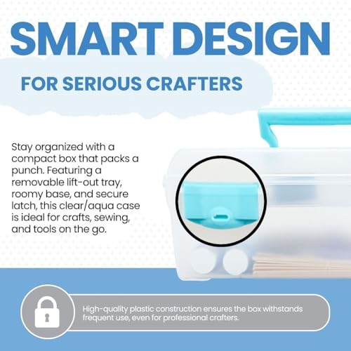 ArtBin 6937AG Essentials Lift-Out Tray Box, Portable Art & Craft Organizer with Handle and Tray, Clear/Aqua