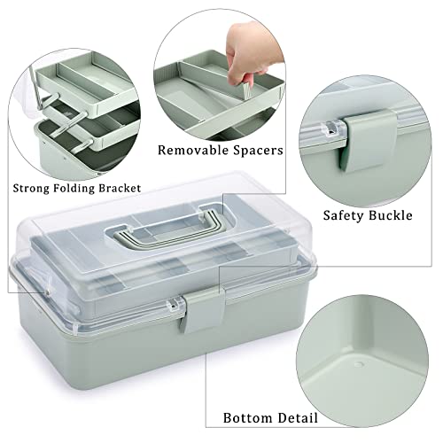 3 Layers Muti-grid Design: The 2 trays of the dividing storage box have 8 compartments for pencils, clips or adhesive tape, etc. Lower drawer can store sewing threads, craft supplies, skin care product, tool accessories and more. Unique design with 3 folding layers, which really saves your space. Removable grids can be adjusted flexibly as your need and makes your desk organized.