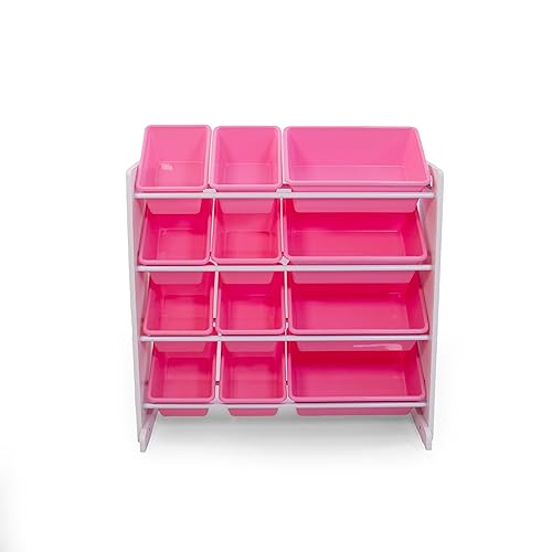 Humble Crew Kids Toy Storage Organizer with 12 Plastic Bins, White/Pink – Removable Bins for Playroom, Bedroom, Toddler Furniture for Boys and Girls Ages