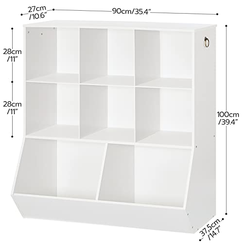 Indispensable Attraction: The White toy storage is the representative color of modern minimalist style, which makes this bookshelf for kids all-match with any decoration style. Whether it is used in the bedroom, living room, children’s room, game room, or school or even office, this multi-compartment kids bookcase will make your room neat and orderly, keeping your mood beautiful every day
