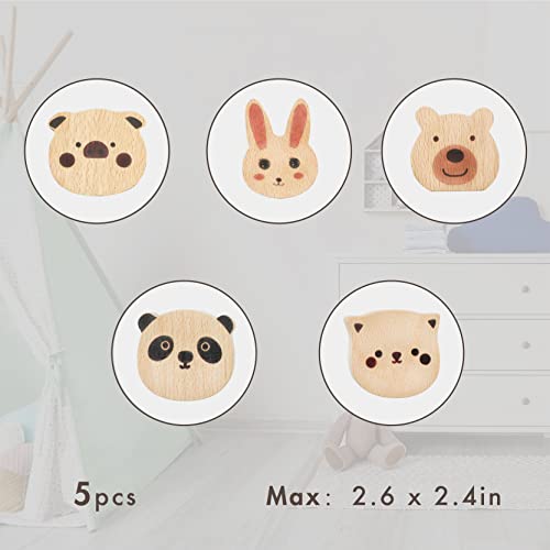 WONQEXZ Wall Hook,Child Baby Nursery Wood Wall Hook,Natural Colorful Animal Coat Hooks,Wooden Hooks,Children Wall Mounted Hook,Set of 5