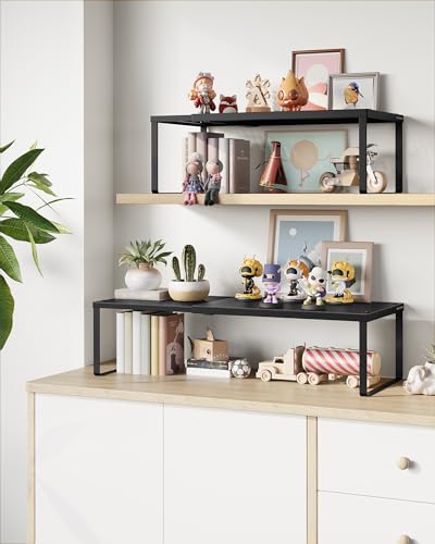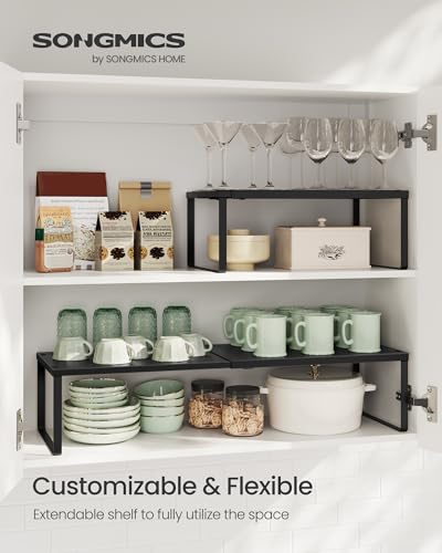 SONGMICS Spice Rack, Expandable Kitchen Countertop Shelf, Small Cupboard Organizer, Metal, Space-Saving Tabletop Shelf, Matte Black UKCS007B01
