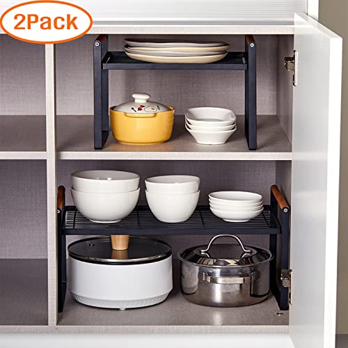 2-Pack Stackable Organizer Set-Versatile Storage Solution for Cabinets and Countertops-Kitchen and Pantry Shelf, Spice Rack – Space-Saving Design-Metal Wire-Black