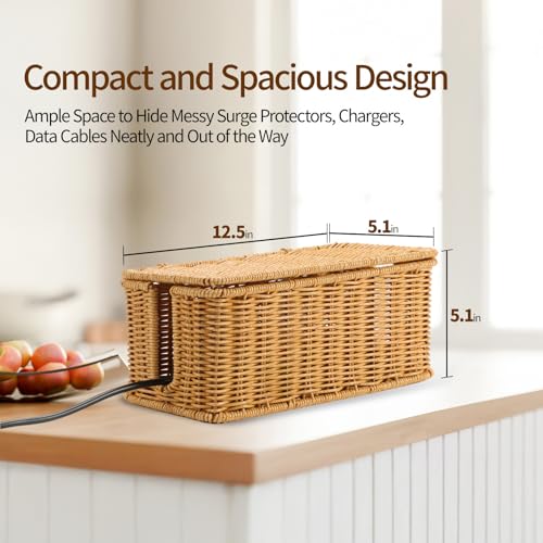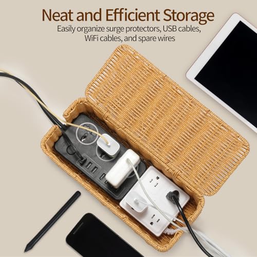 Durable Handcrafted Rattan Cable Box: Each handwoven cable organizer box is built to last, with high-quality synthetic rattan that resists wear/easy to clean. Its lightweight yet sturdy frame ensures long-term use, making it the ideal power strip box for home office
